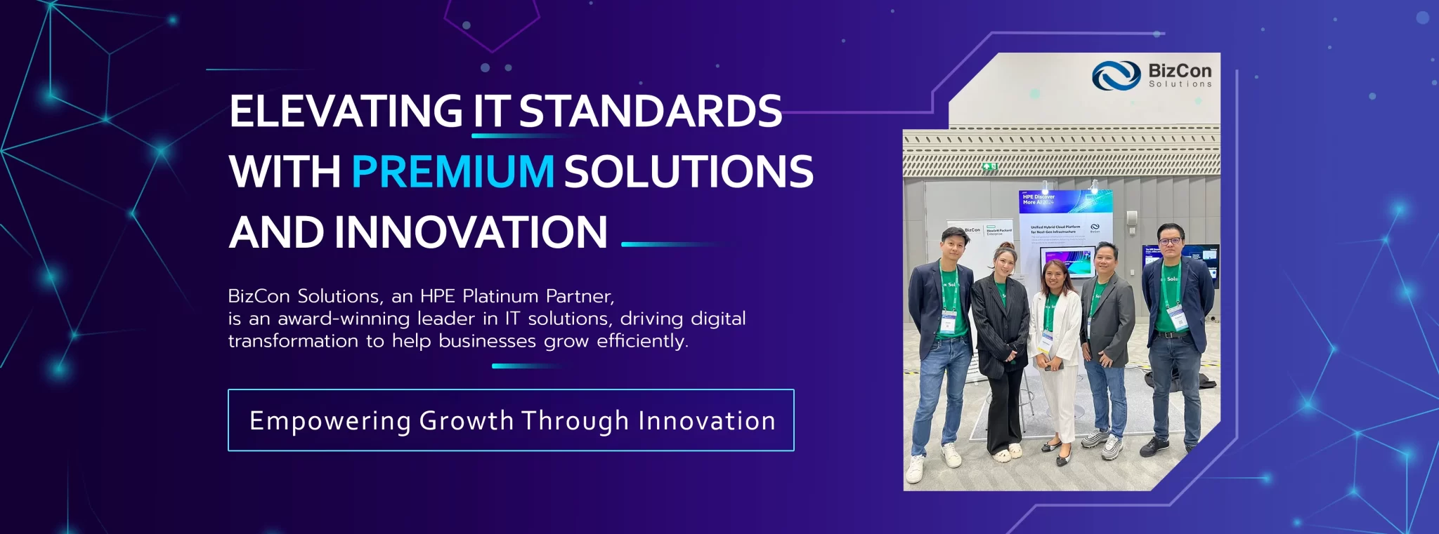 BizCon Solutions เป็นผู้ให้บริการด้านไอทีชั้นนำในประเทศไทย โดยเชี่ยวชาญในการให้บริการเทคโนโลยีที่ครอบคลุม และในฐานะ HPE Platinum Partner เรามีการนำเสนอโซลูชันที่ทันสมัยให้กับธุรกิจขนาดกลางและขนาดใหญ่ในหลายอุตสาหกรรม เพื่อช่วยขับเคลื่อนการเปลี่ยนแปลงทางดิจิทัลและเสริมสร้างความสามารถในการแข่งขัน