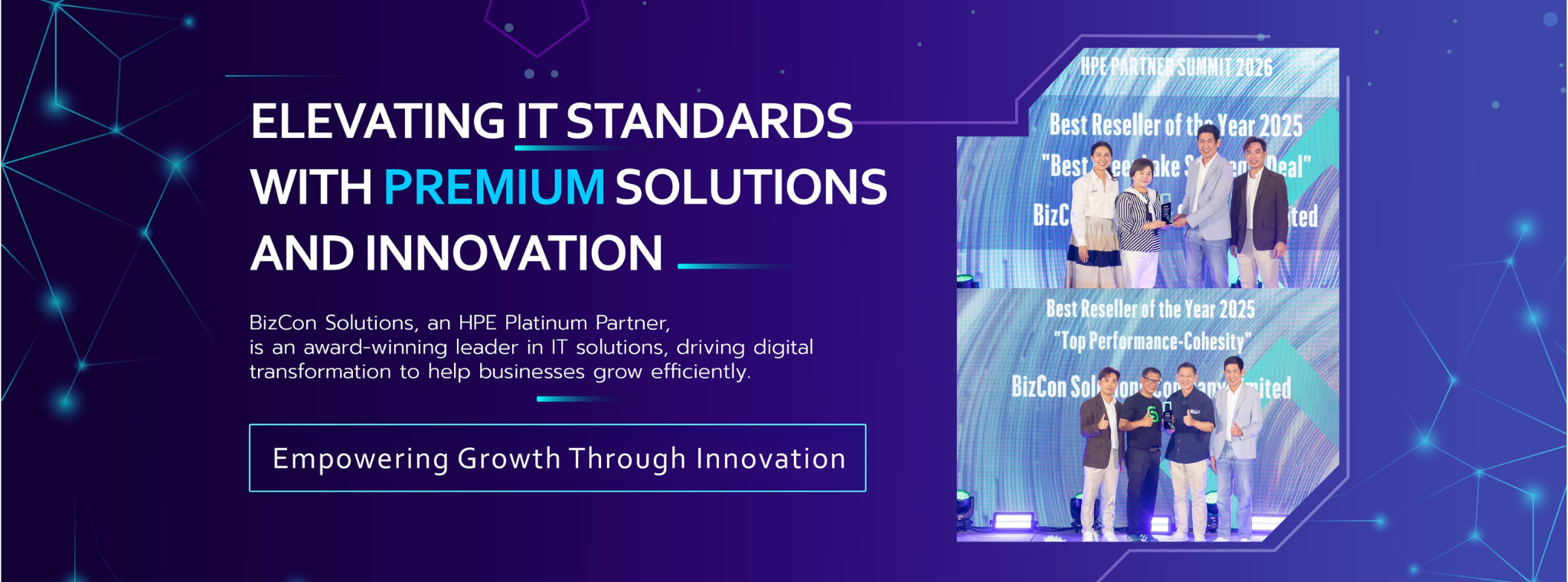 BizCon Solutions เป็นผู้ให้บริการด้านไอทีชั้นนำในประเทศไทย โดยเชี่ยวชาญในการให้บริการเทคโนโลยีที่ครอบคลุม และในฐานะ HPE Platinum Partner เรามีการนำเสนอโซลูชันที่ทันสมัยให้กับธุรกิจขนาดกลางและขนาดใหญ่ในหลายอุตสาหกรรม เพื่อช่วยขับเคลื่อนการเปลี่ยนแปลงทางดิจิทัลและเสริมสร้างความสามารถในการแข่งขัน